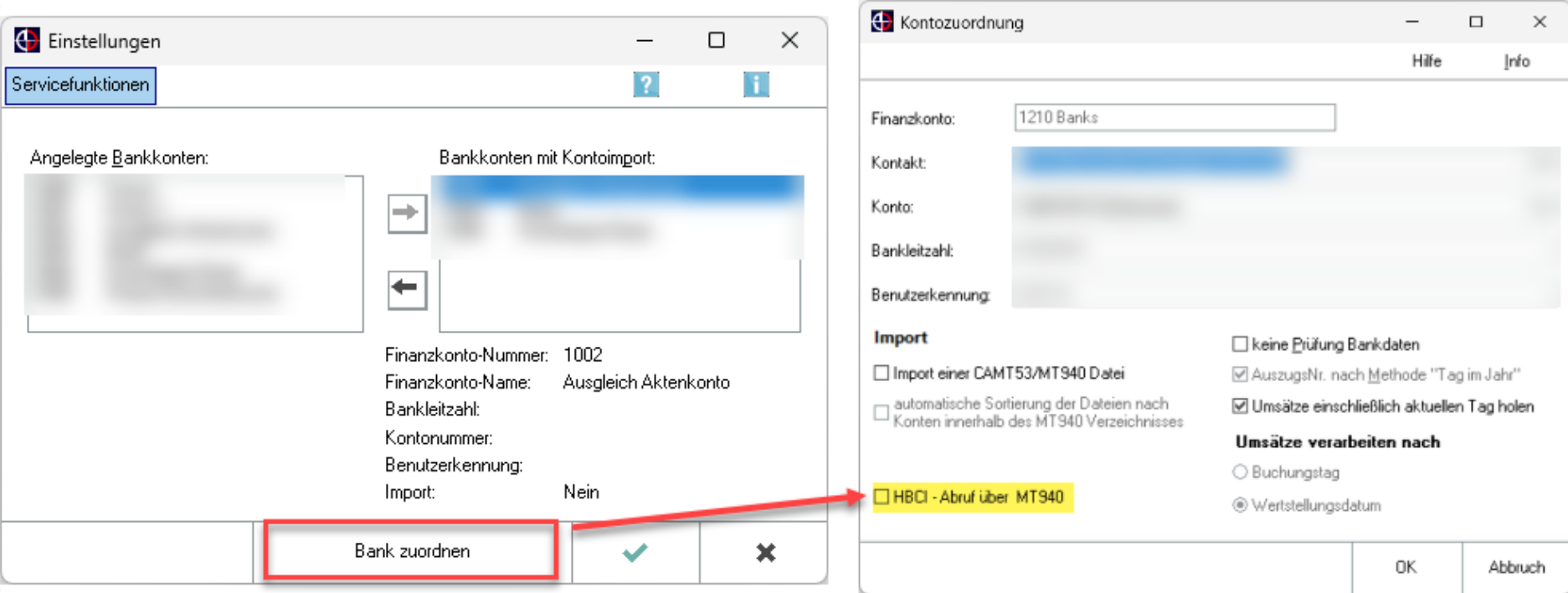 Im Kontoimport kann in den Einstellungen zu einer Bank übergangsweise der Abruf der Kontoumsätze via FinTS/HBCI im MT940 Format eingestellt werden.