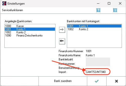 Beim Import über HBCI wird automatisch erkannt, ob die Bank die Kontoumsätze in MT940 oder CAMT.053 intern an Kontoimport überträgt.