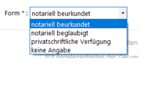 Bei der Erfassung kann nunmehr die Form der Vorsorgeurkunde bestimmt werden: