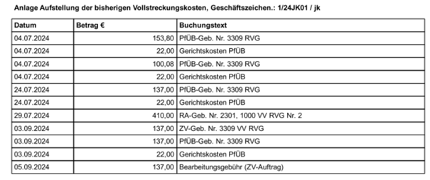 Bei der Erstellung eines Vollstreckungsauftrages bzw. eines Antrages auf Erlass eines Pfändungs- und Überweisungsbeschlusses besteht nunmehr die Möglichkeit die Aufstellung über die geleisteten Zahlungen sowie die Aufstellung über die bisherigen Vollstreckungskosten auch automatisiert aus dem Forderungskonto zu erstellen.